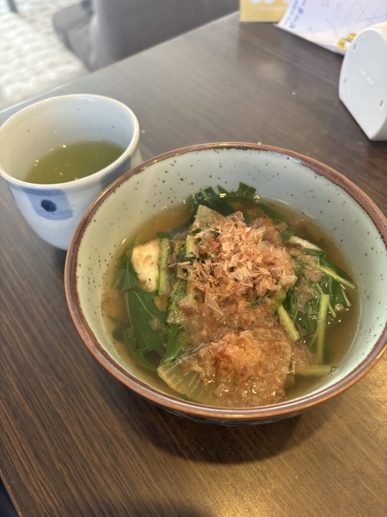 うちのお雑煮は鰹出汁に水菜、大根、鶏肉が入ります。仕上げに鰹節を好きなだけかけて食べます。