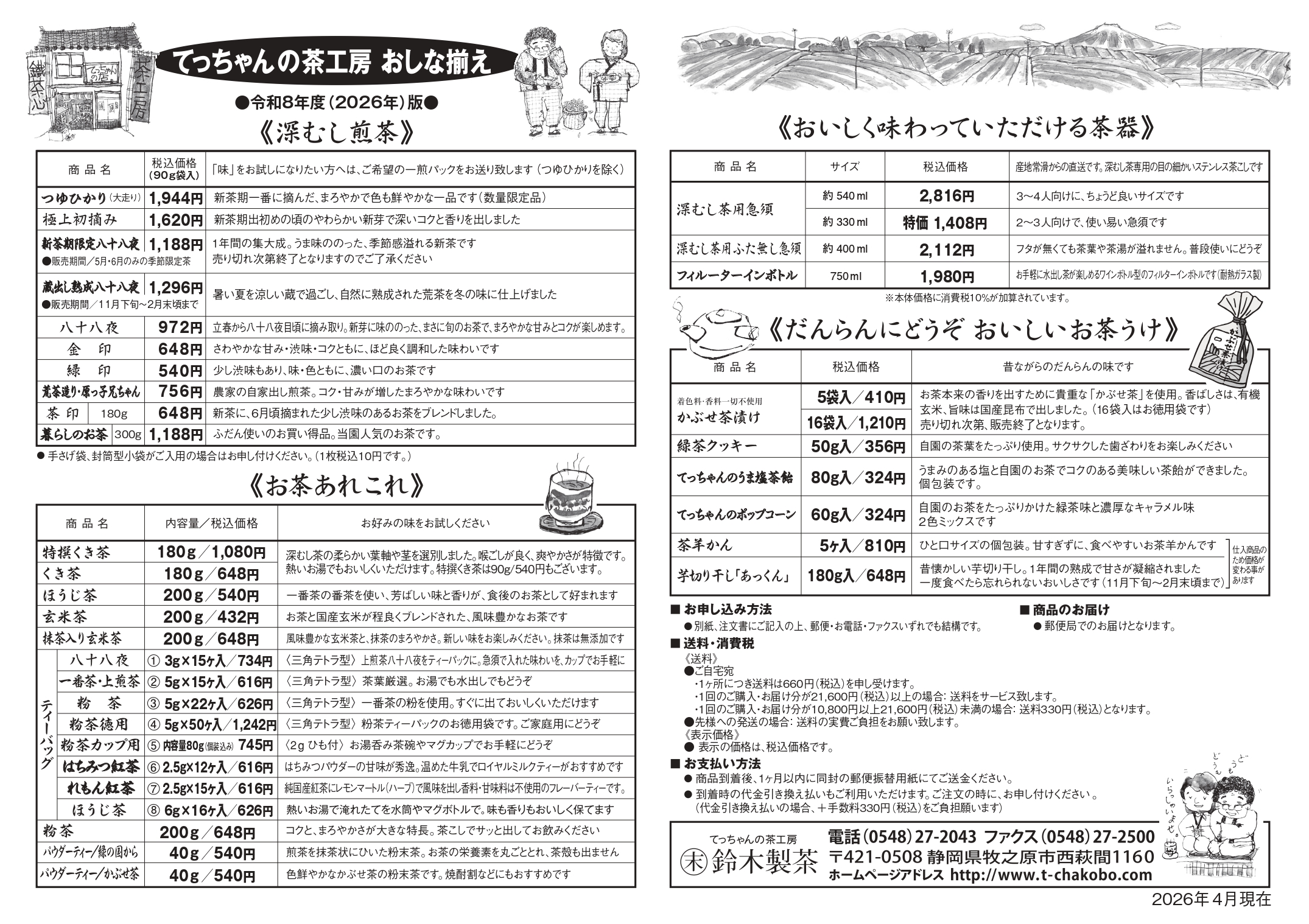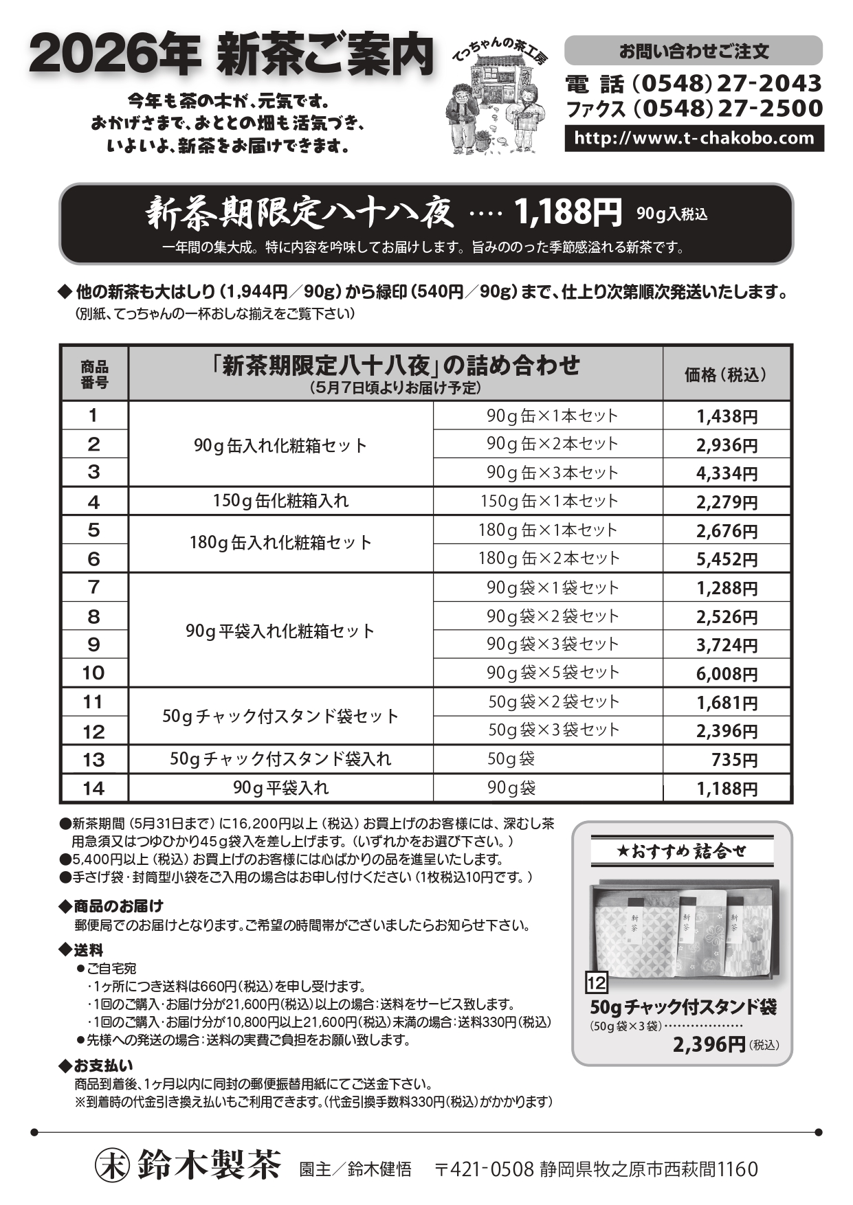 静岡一の大茶園 牧之原台地から、自信を持ってお届け致します。濃い味・濃い色・コクありのてっちゃんの茶工房の深蒸し茶を、どうぞ!